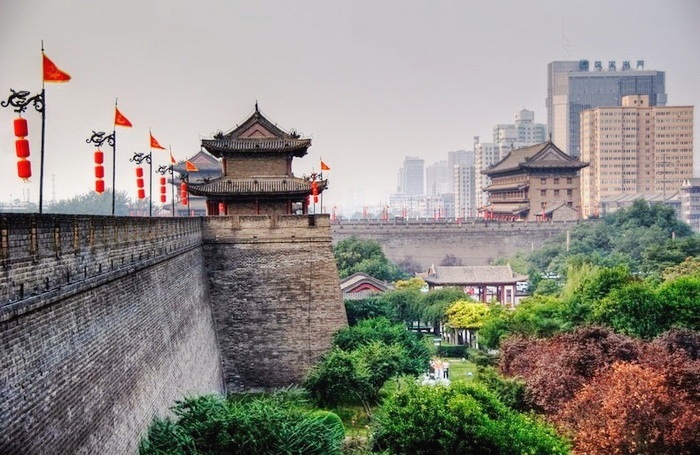 Городская стена является самой полной городской стеной, которая сохранилась в Китае, а также одной из крупнейших древних оборонительных систем в мире. Общая протяженность 13.7 км, толщина основания 15-18 м, высота 12-14 м. Поскольку древнее оружие не могло пробить стену и единственным способом для врага войти в город было атаковать ворота городской стены, внутри стены были построены сложные воротные конструкции. Сегодня она делит Сиань на внутренний и внешний город. Для входа на стену рекомендуем заходить через Южные «Yǒngníng mén» (永宁门)или Северные ворота «Ānyuǎn mén»(安远门). С высоты можно полюбоваться панорамой города и ближайшими достопримечательностями – Барабанной башней и Колокольней. Особенно красиво гулять по освещенной стене в вечернее время.